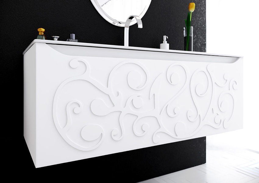 • Боковые и фасадные части мебели изготовлены из высококачественного испанского МДФ концерна FINSA, покрытого 5 слоями эмали и лака